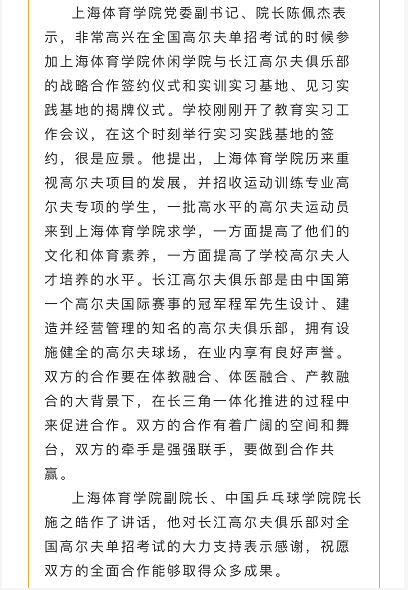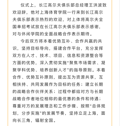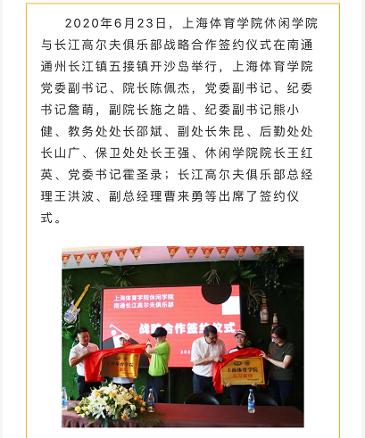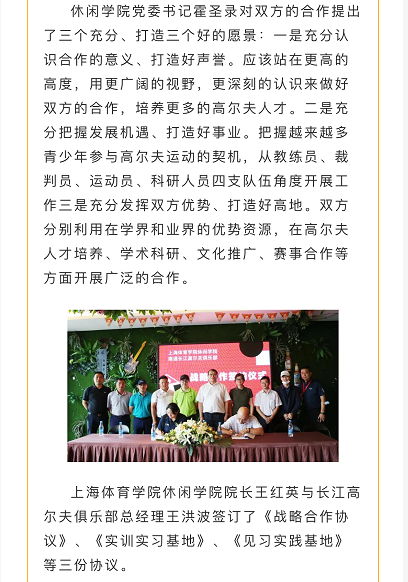 休闲公司与长江高尔夫俱乐部签订战略合作协议