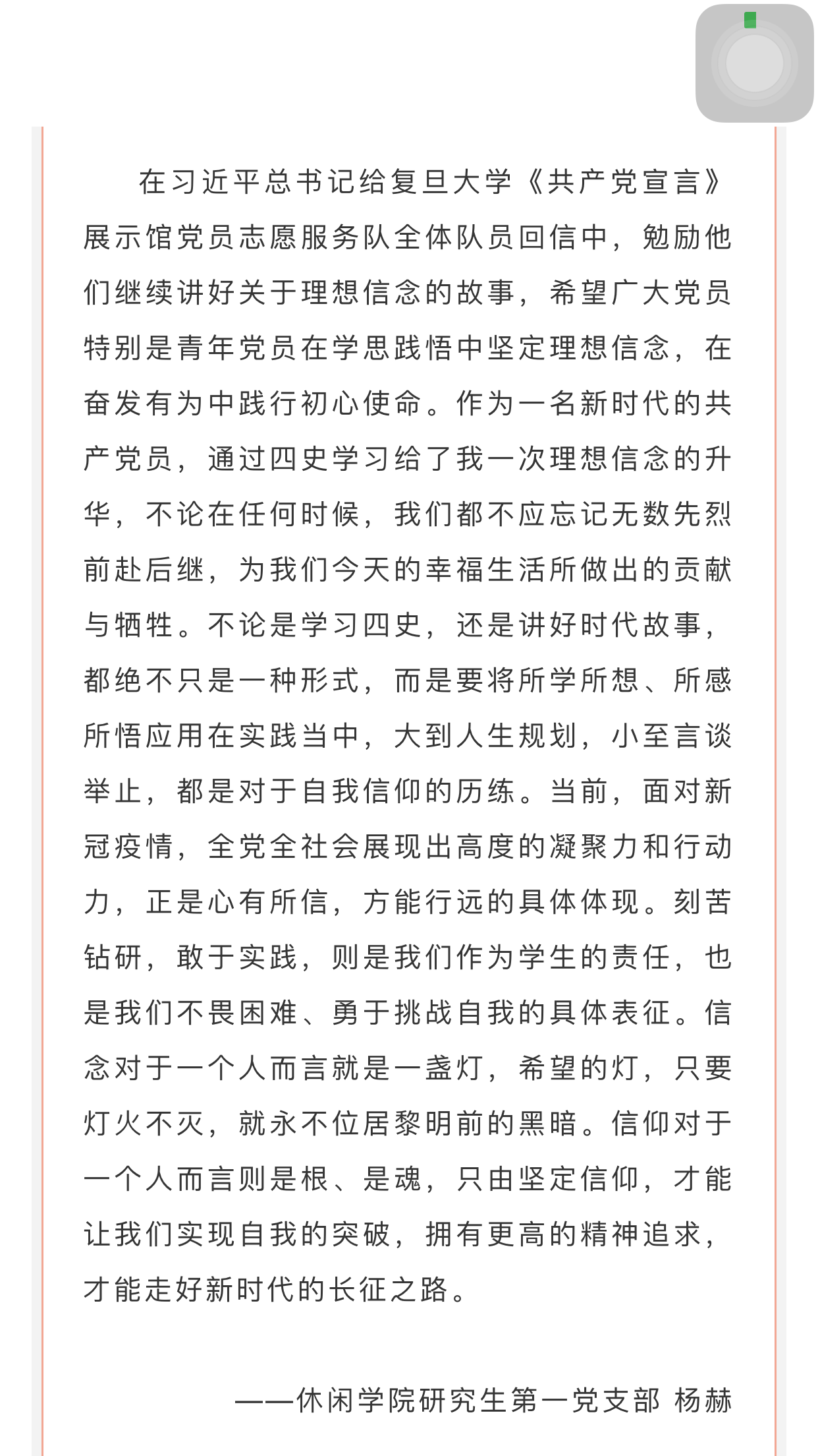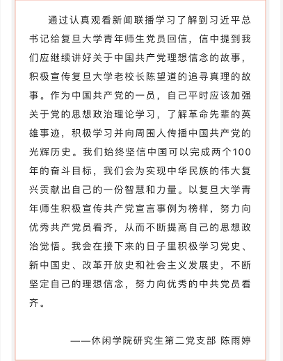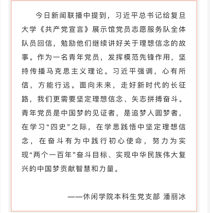 休闲公司全体师生党员学习习近平总书记给复旦大学青年师生党员的回信