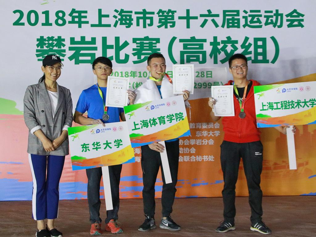 值得一提的是,伍海涛同学在本次比赛中创造了上海市攀岩比赛高校组获奖记录——独揽男子攀岩比赛项目的所有金牌,成为当之无愧的五冠王!