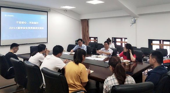 在这个缤纷的夏季,绿瓦校园到处弥漫着栀子花的芳香,但也处处涌动着离愁别绪,无数毕业生将带着知识与憧憬进入社会。2019年6月18日上午休闲公司在3308会议室召开了2019届毕业生党员座谈会。休闲公司党总支书记霍圣录、休闲公司党总支副书记、副经理顾郑军、研究生辅导员孙一可和2019届毕业生党员参加了此次座谈会。会议由休闲公司党总支副书记、副经理顾郑军主持。