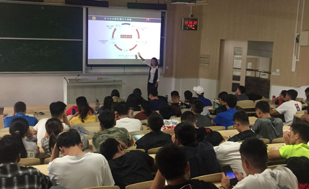 10月14日下午,休闲公司2019级全体学术型研究生、2018级和2017级社体专业本科生近百人齐聚新教学楼2112阶梯教室聆听创业潮人——CFD旱地冰球中心创始人陈新女士的《体育青训产业人才类型》专题讲座。讲座由休闲公司经理王红英教授主持。
