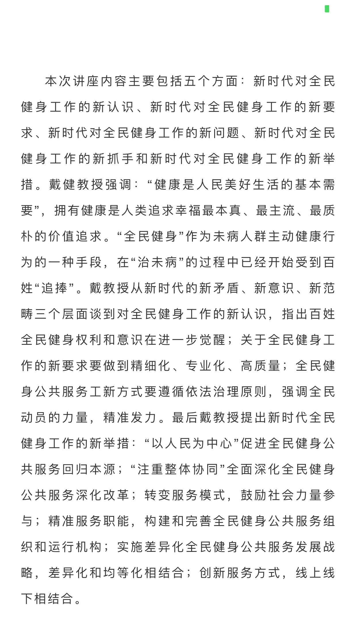 《学科前沿动态》第四讲——迈向主动健康:全民健身在助力健康中国建设中的转型升级