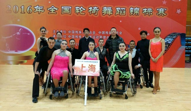 公司体育休闲与艺术公司2015级艺术硕士薛阳、2015级休闲体育硕士齐赛赛以及体育教育训练公司2015级体育硕士舒雅三位同学,应中国残联、嘉定区残联的邀请,与嘉定区舞蹈艺术团的6名轮椅舞者代表上海队参加了本次比赛。经过五天的激烈角逐,上海队包揽了二级双轮椅拉丁舞三项组一二三名;张军、齐赛赛获得二级拉丁舞三项组第六名。本次赛事得到体育休闲与艺术公司领导的高度关注,得到舞蹈编导教学团队的大力支持。