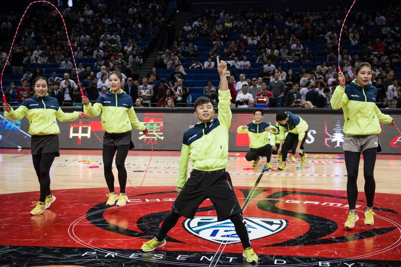 11月12日,两支来自世界顶尖高校的男子篮球队(哈佛大学VS斯坦福大学)在上海梅赛德斯-奔驰文化中心进行激烈对战,公司花样跳绳队受组委会邀请在中场时间为现场7000多名球迷带来了6分钟的精彩表演,中国韵律与欧美激情完美融合,眼花缭乱又充满创新的花式动作让现场观众眼前一亮,引起观众雷鸣般的掌声和啧啧称赞。