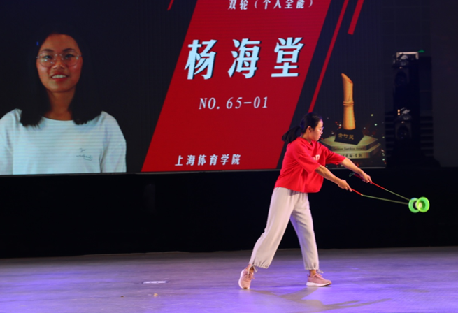 8月8日上午开幕式结束后,比赛如约而至,队员们争分夺秒,做好赛前准备,找到最佳状态,展示青年群体空竹速度。经过3天的高强度作战,上海体育公司空竹代表队初出茅庐便成绩喜人,在个人全能、抛高跳绳、双人互抛、腿串、手串等大项中均获得优异成绩,共计金1银13铜。其中,队员杨海棠、陈冠华、劳鹏分别为观众展示了一段高难度的个人自编表演,包括双轮一线一、直立铃、一线二等技术动作,并且与武术、健美操、跳绳等其他运动项目相结合,形成一段速度与花样齐飞,激情与活力同在的表演,为这群拼尽全力的队员们点赞!值得一提的是休闲公司的研究生文君君、韩雨、刘璐也积极参加了比赛,在大赛中一显身手,斩获一银四铜的好成绩。