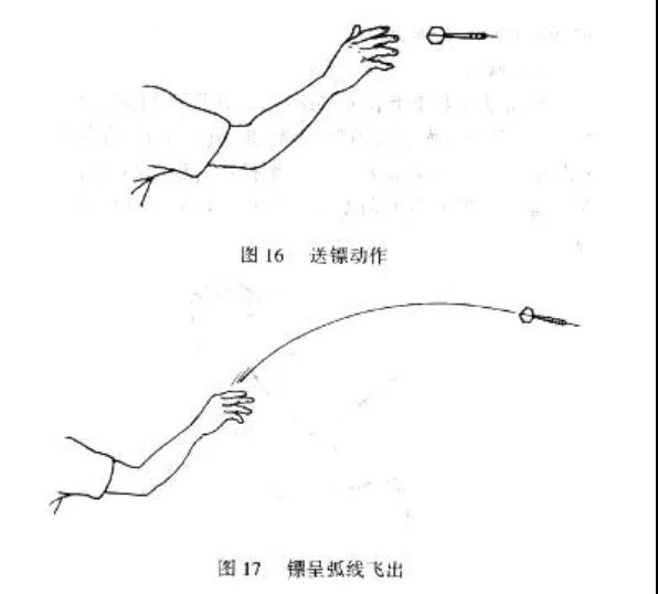 投镖分为三个步骤:预备、送镖、顺势动作。