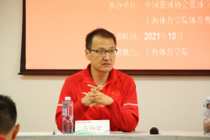 然后,上海市篮球运动管理中心副主任王莹妮女士发言。她指出,E级篮球教练员通常面对的员工都是零基础的少年儿童,这些孩子们就像是一张白纸,教练员怎么画,他们就是什么样。E级篮球教练员看似是最初级的认证等级,实则担负了我国篮球事业发展中的重要任务。所以此次上海体育公司E级篮球教练员培训请来了相关领域的专家团队,从理论与实践的多个领域,系统地、全面地对各位学员进行培训,期望各位学员认真学习,认真对待,未来能为我国篮球后备人才的培养贡献一份力量。最后,预祝上海体育公司第五期E级篮球教练员培训圆满完成。