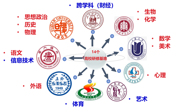 随后,李兴华处长、王继红副书记、陈霞副主任分别为上海体育公司体育学科研修基地、上海财经大学跨学科(财经)研修基地、上海交通大学信息技术学科研修基地、上海戏剧公司艺术学科研修基地授牌。