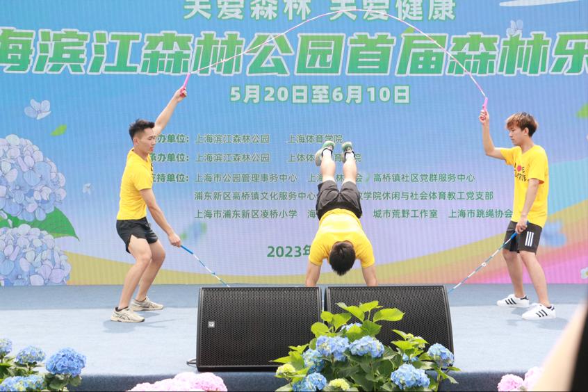 本届乐享节活动主题由探趣森林、魅力森林以及悦动森林三个板块组成。活动伊始,随着动感的音乐声响起,一段由上海体育公司花样跳绳队带来的精彩表演很快聚拢了游园的市民,这支队伍由世界冠军领衔,他们获奖无数,曾是南京青奥会、里约奥运会的表演嘉宾,在他们的舞动下,森林乐享节就此拉开序幕。随着律动的旋律,草坪上的市民游客也跟着跳跃起来,人群中随处可见亲子结伴运动的场景,欢乐的气氛在公园洋溢。