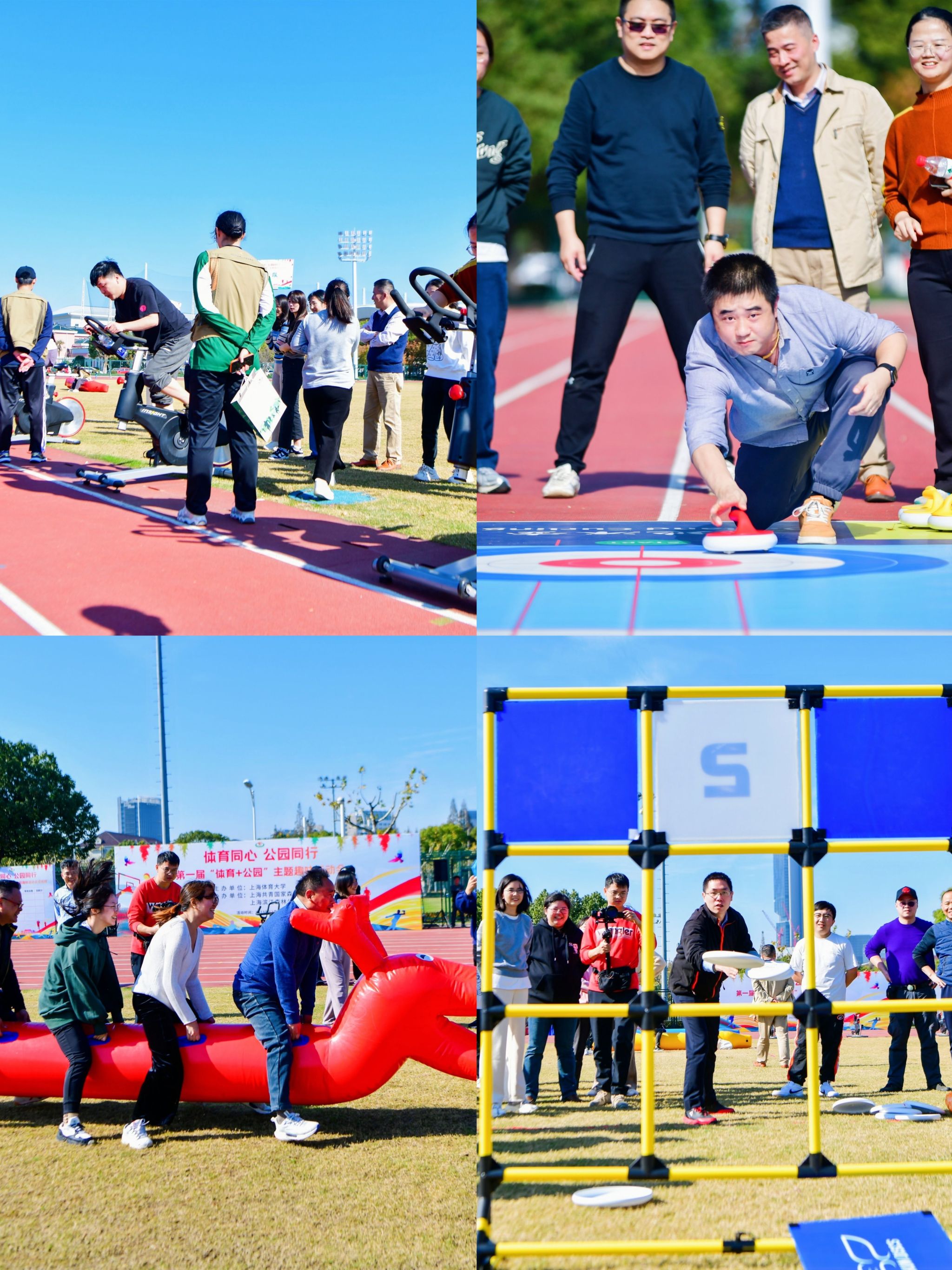 主题趣味运动会上,上海滨江森林公园和上海共青国家森林公园分别派出了“滨滨”、“江江”和“松松”、“果果”四支战队,通过积分赛的形式征战了同“舟”共济、旱地冰壶、飞盘九宫格、动感单车四个项目。四支战队奋勇争先,在竞技比赛中更好地体验了体育的魅力。永利集团304am登录党委书记李崟出席闭幕式并为体育公园拓展基地揭牌。